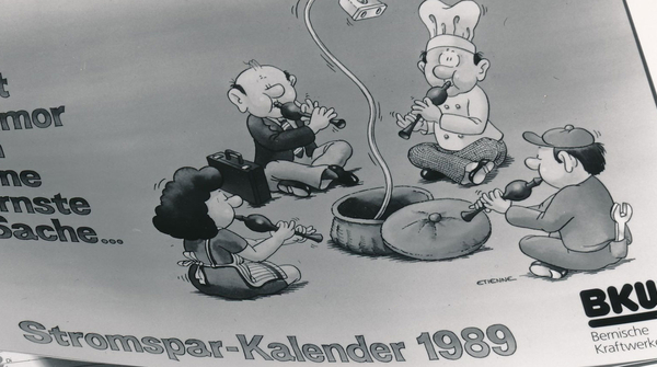 Wer sich durchs Archiv der BKW wälzt, merkt rasch: Stromsparen war schon in früheren Jahren ein Thema, nicht erst letzten Winter. Es gab zahlreiche Initiativen, um den Stromverbrauch im Griff behalten zu können. Eine dieser Aktionen begann 1988, ungefähr mit Bundesrat Adolf Ogis berühmten Eier-Koch-Auftritt am Fernsehen. Die BKW rief den sogenannten Stromsparclub ins Leben. Ogi selbst war Mitglied Nummer 1 und auch im Patronatskomitee vertreten.